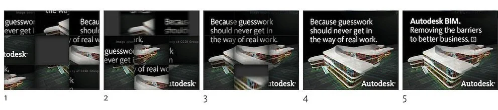 Solution: Illustrate how the process feels to those implementing it. By turning the ads into animated puzzles. With multiple moving pieces constantly shifting, assembling and reassembling. Until Autodesk brings it all together.