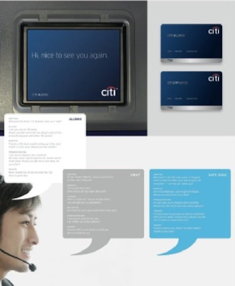 CITI TALK. What if we could individually tailor how we talked to each customer across all channels – based on the enormous amount Citi already knew about each customer? So everything from Call Centers to ATMs to the bank's online presence became more and more "naturalized" to each customer.